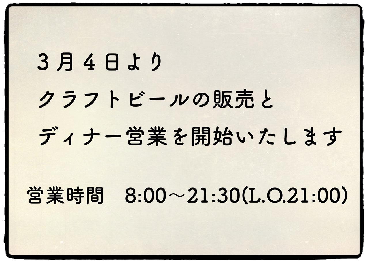 また、先日告知いたしましたクラフトビールの販売開始とディナー営業の開始ですが