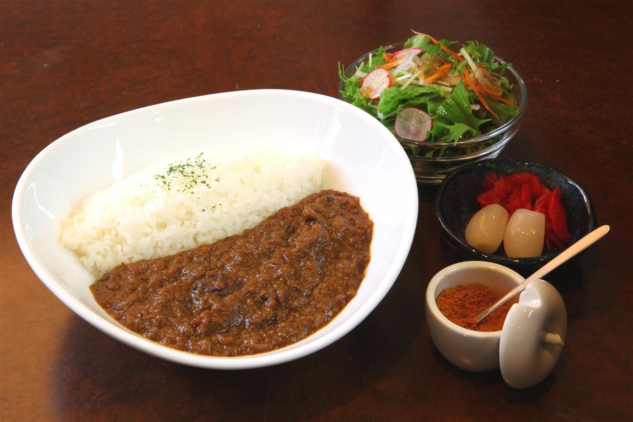 ずしかれーにごろっとした近江牛のバラ肉が入ったカレー。