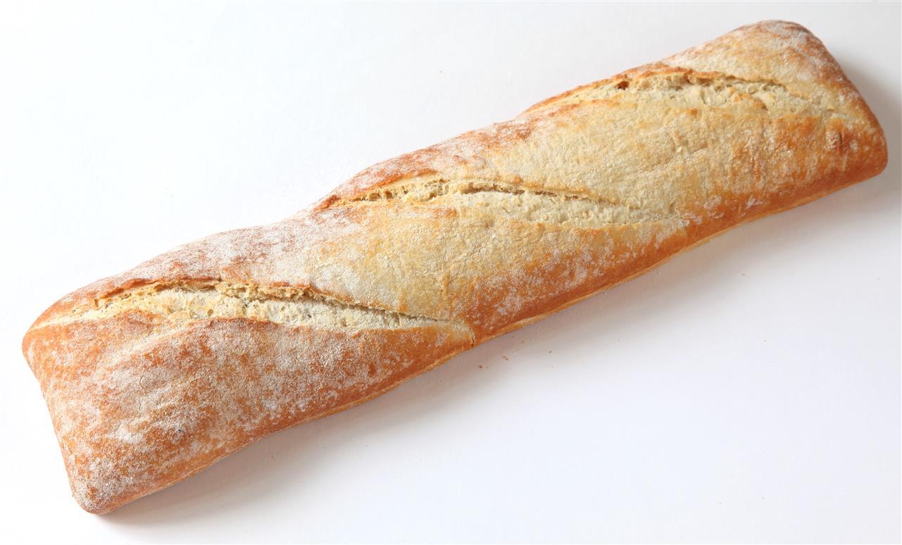 ゆっくり発酵させ焼き上げたオリーブ油使用のバケットです。しっとり、もっちりしています。小麦の味がしっかり味わえる当店一押しのバケットです。アレルギー:小麦