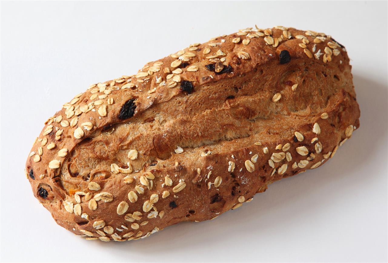 レーズン、リンゴ、オレンジ、レモンピールのドライフルーツやクルミを贅沢に使ったパン。そのままはもちろん、チーズなどともよく合います。アレルギー:小麦、乳、卵、オレンジ、クルミ、リンゴ
