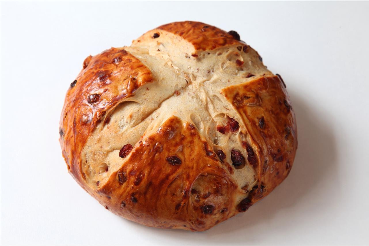 甘酸っぱいドライクランベリーとマイルドで食感の良いビーカンナッツを生地に混ぜ込みました。シナモンの風味をきかせたブリオッシュタイプのソフトな食感です。アレルギー:小麦、乳、卵