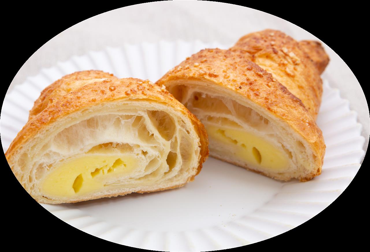 パリパリの生地に上品なバニラフィリングを包み込みました。香りもおいしいクロワッサンです。アレルギー:小麦、乳、卵